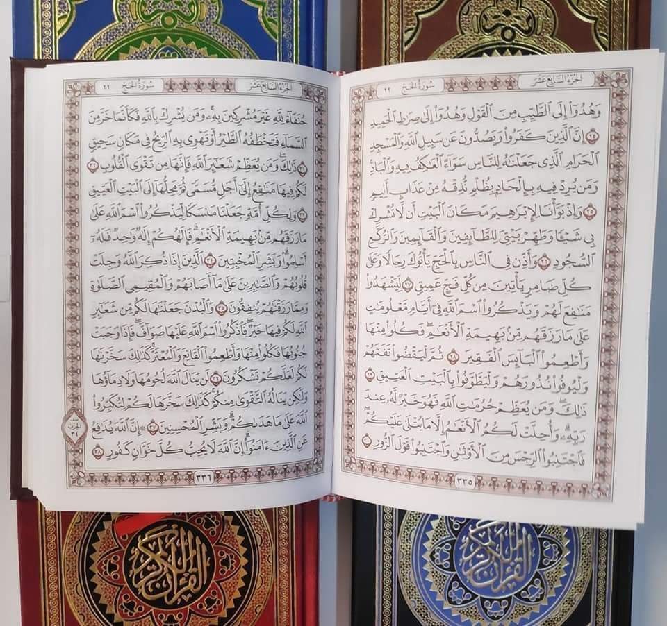مصحف سحار 4 لون ورق كريمي تجليد بـركوين مقاس 17×24 " حجم النصف ”   " الكرتونه 20 مصحف "